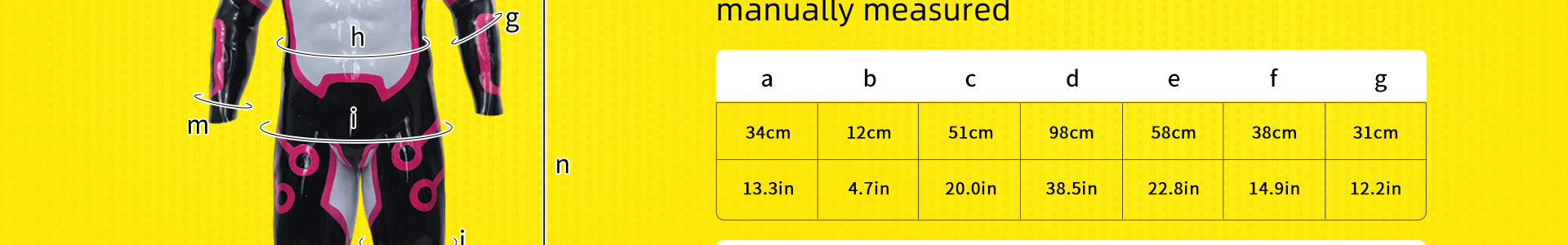 The suit is fantastic for roleplay and cosplay. Wearing it feels natural, the muscles look realistic, and the glossy silicone really makes it stand out. Definitely worth the price