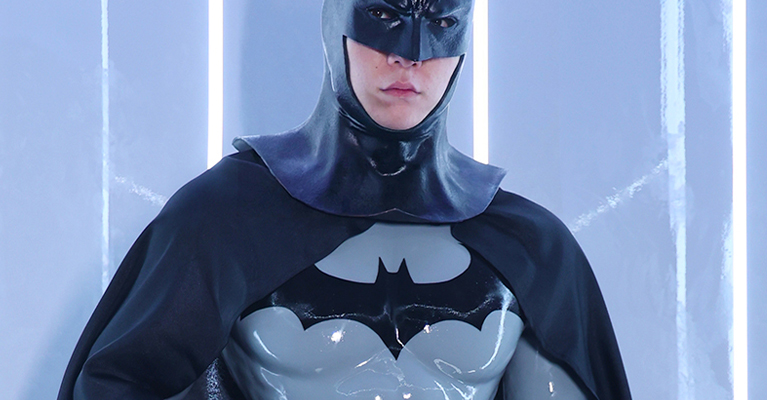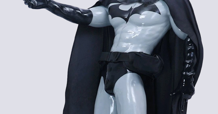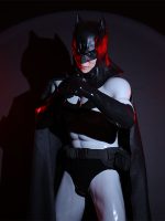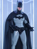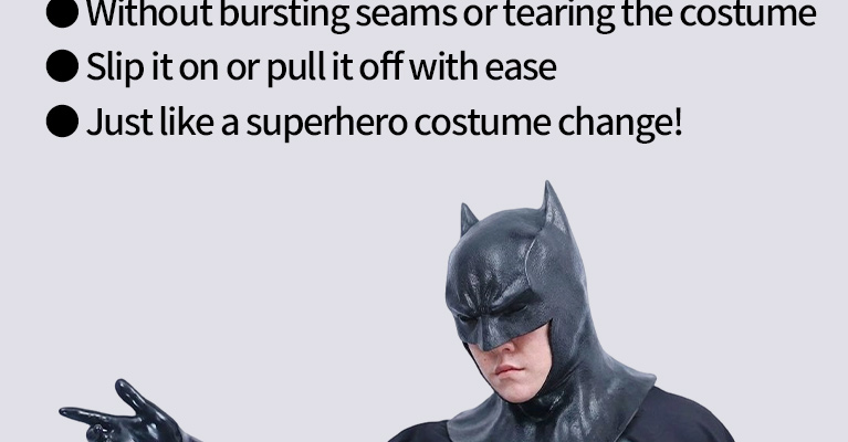 The overall look gives strong Batman vibes. The concrete grey muscle suit feels like a tactical armor, and the black glossy gloves add that perfect dark vigilante touch.