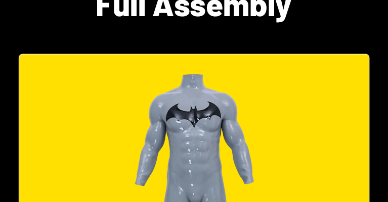 The combo works perfectly together. The concrete grey muscle suit looks powerful, and the black glossy gloves really complete the look. Fit is accurate and the overall silhouette feels very natural.