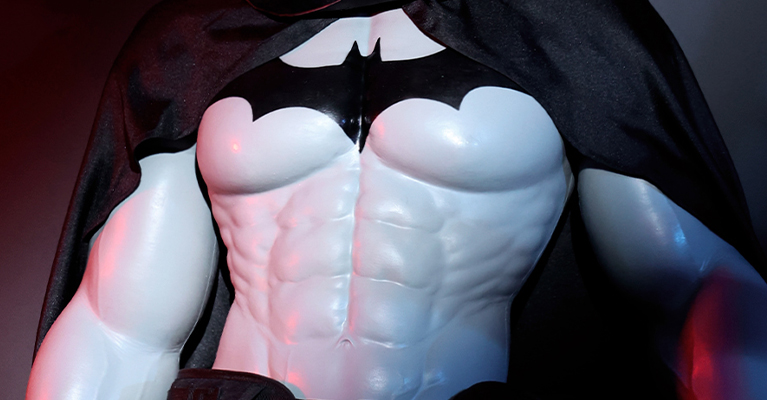 The Concrete Grey color looks even better in person. It has a cool, solid tone that really highlights the muscle definition. The Bat version feels bold and powerful.