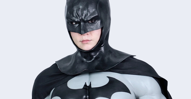 Paired with a bat-style mask or cowl, this suit looks incredible. The concrete grey works perfectly with darker accessories and completes the vigilante look.