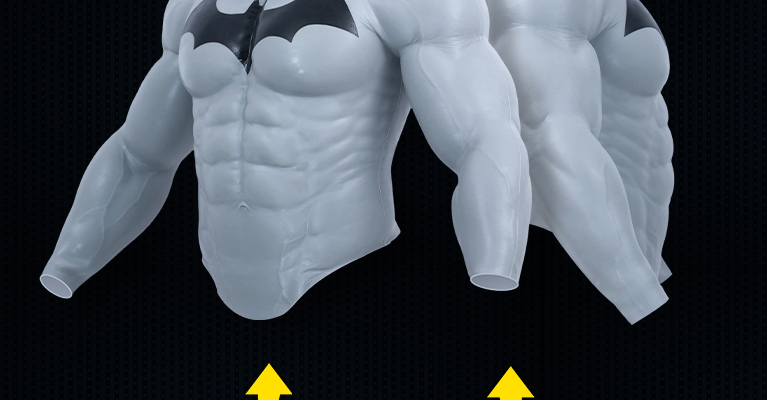 The chest, arms, and abs have more depth compared to basic muscle suits, and it still moves naturally when worn.