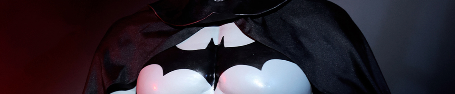 This suit feels powerful rather than sexy. The bat-inspired design and grey tone give it a serious, intimidating presence instead of a costume look.
