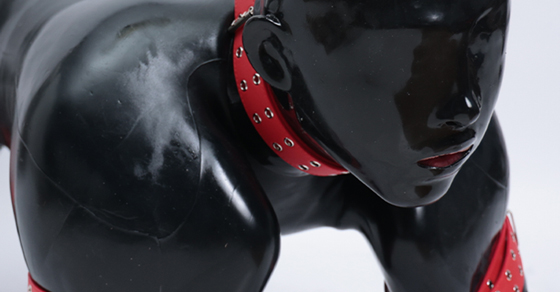 - Sleek black look for fetish play