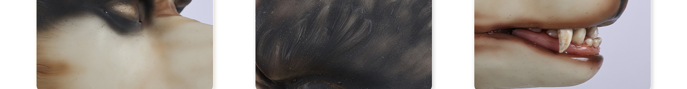Paint job is gorgeous in person. Very detailed around the snout. Ears and mouth hold their shape even after tugging. Perfect mix of scary and sexy. Great work, Smitizen.