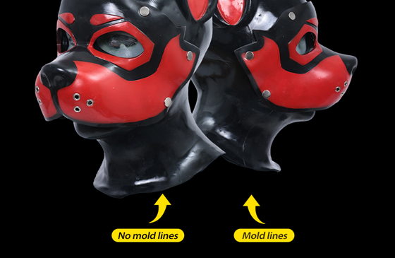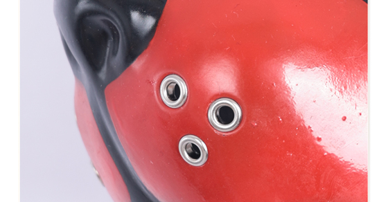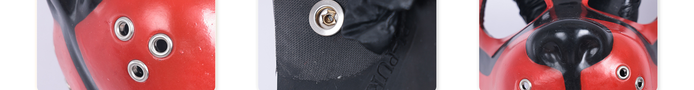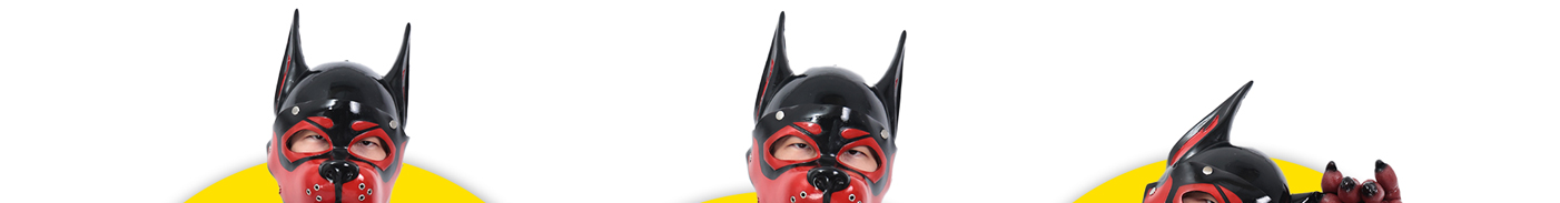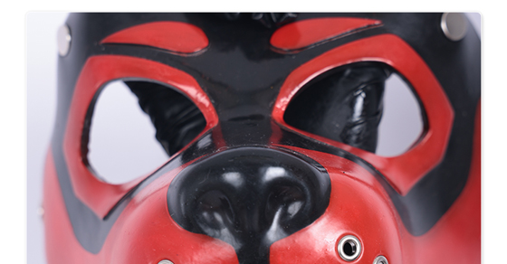 This Red & Black Silicone Muzzle Puppy Hood fits snugly, feels smooth, and looks both cute and fierce—love it!