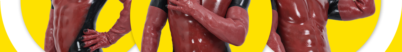 Red & Black Glossy Silicone Muscle Suit With Anal Hole