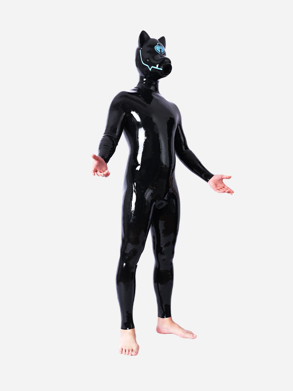 I bought this hood to complete a drone pup ensemble, and wow—it delivers. The gloss is high shine and really makes the black and blue combo pop (I bought my favorite blue lock version). I’ve worn it for over an hour and it didn’t shift or feel uncomfortable. The fit around the neck is snug, and the silicone stretches.